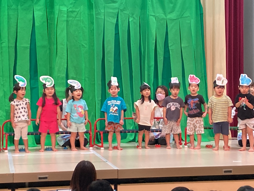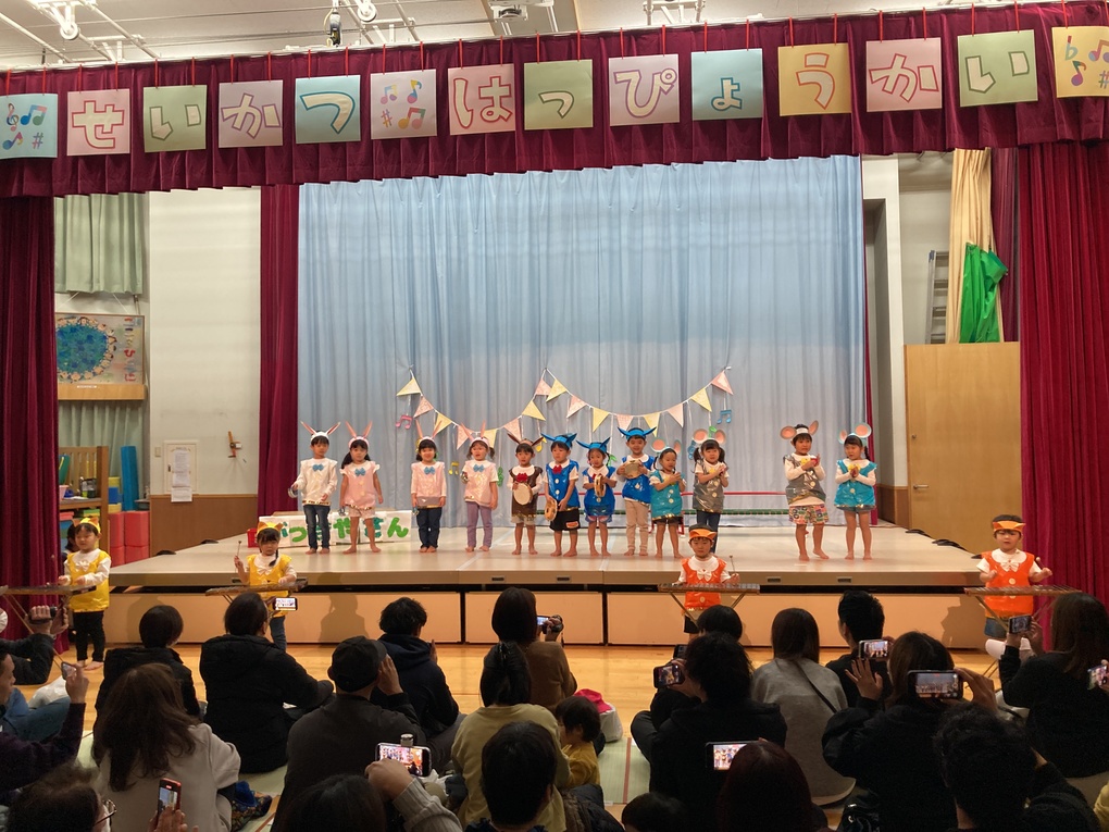 劇ごっこ「もりのおふろ」・うた、合奏「ようかいしりとり」「はたらくくるま」「きらきらぼし」を発表しました✨
