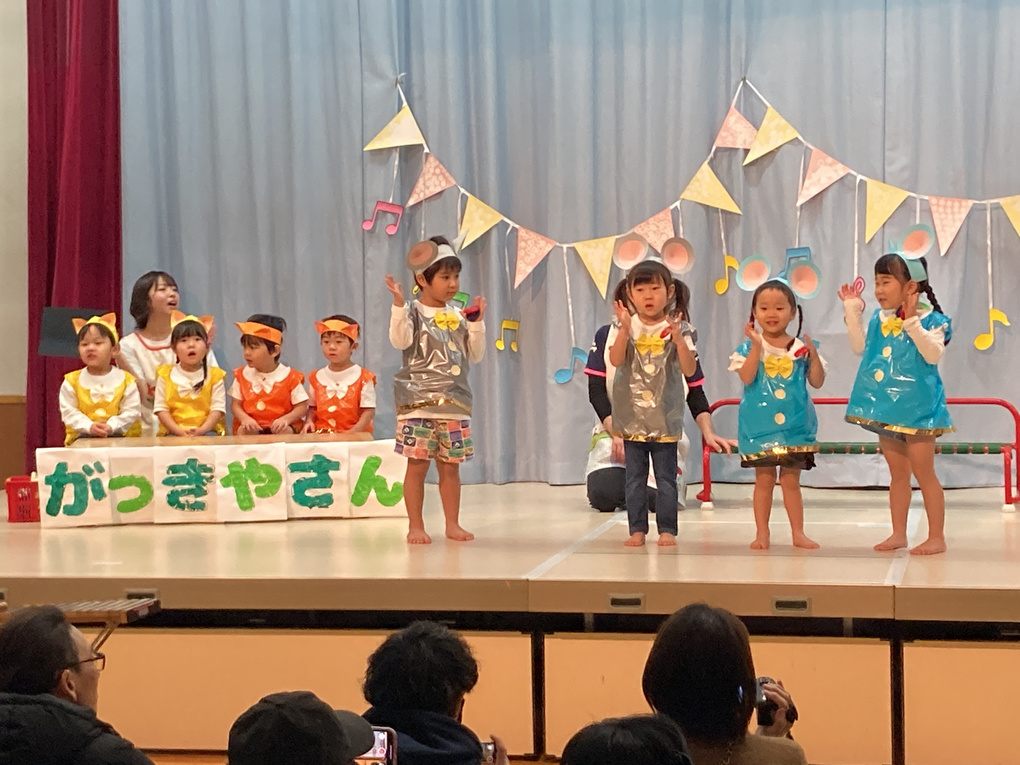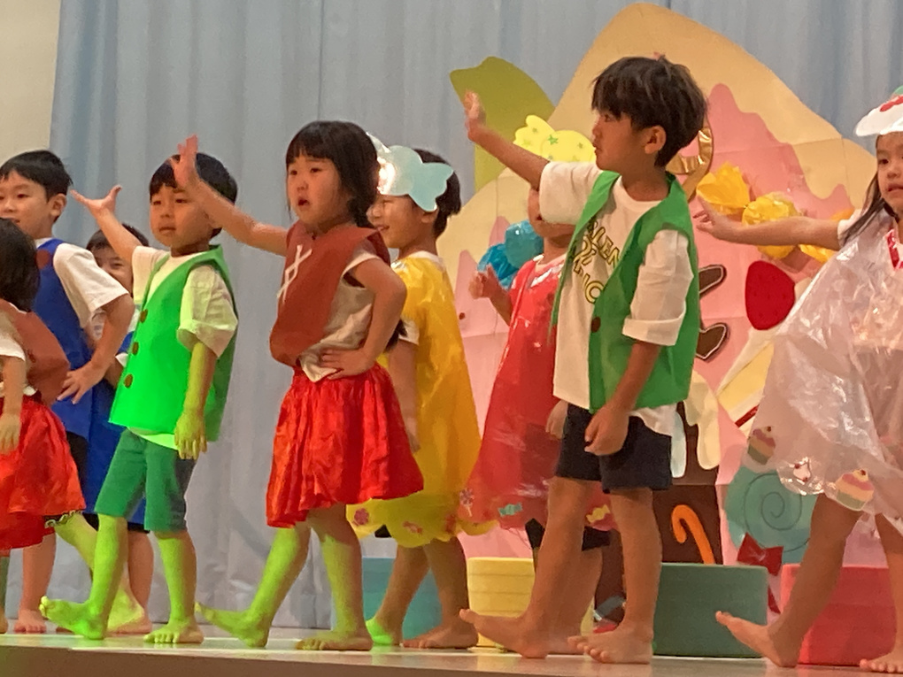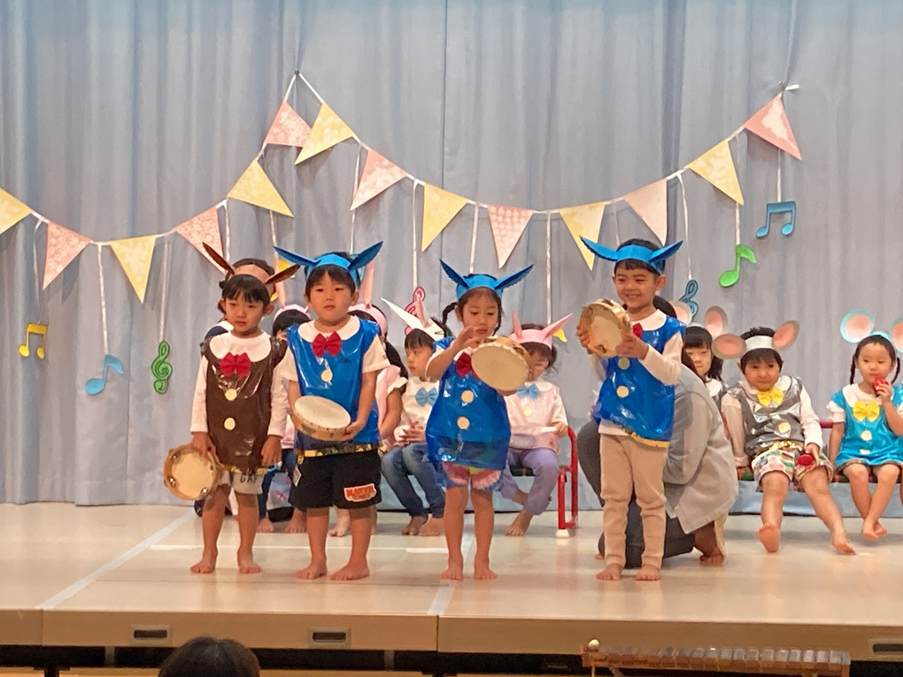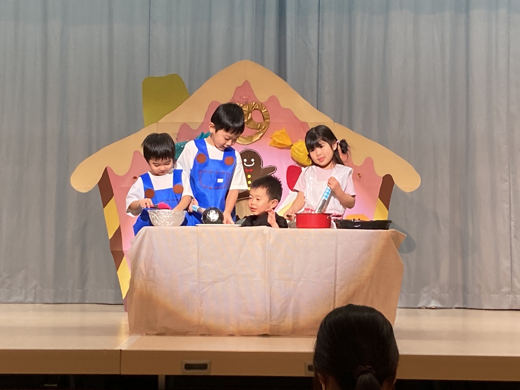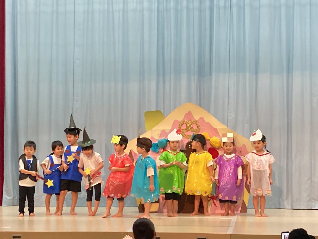 きりん組さんは「おかしのいえ」の劇と「小さな世界」の合奏を発表しました✨