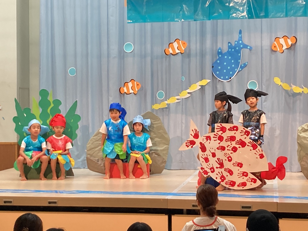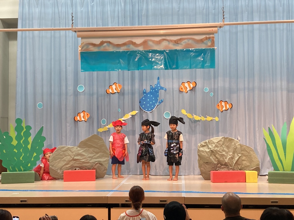 劇中には影絵の発表もありました🐡キラキラでカラフルな海の生き物と子どもたちの歌声がとても綺麗でした✨