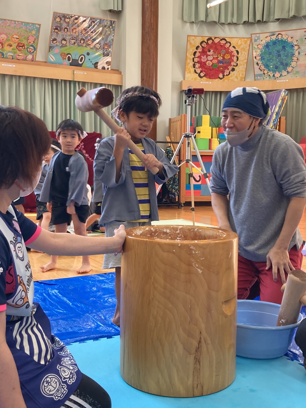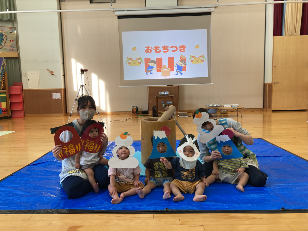 きりん組さん、らいおん組さんは実際にお餅をつきました!パワーいっぱいでした✨