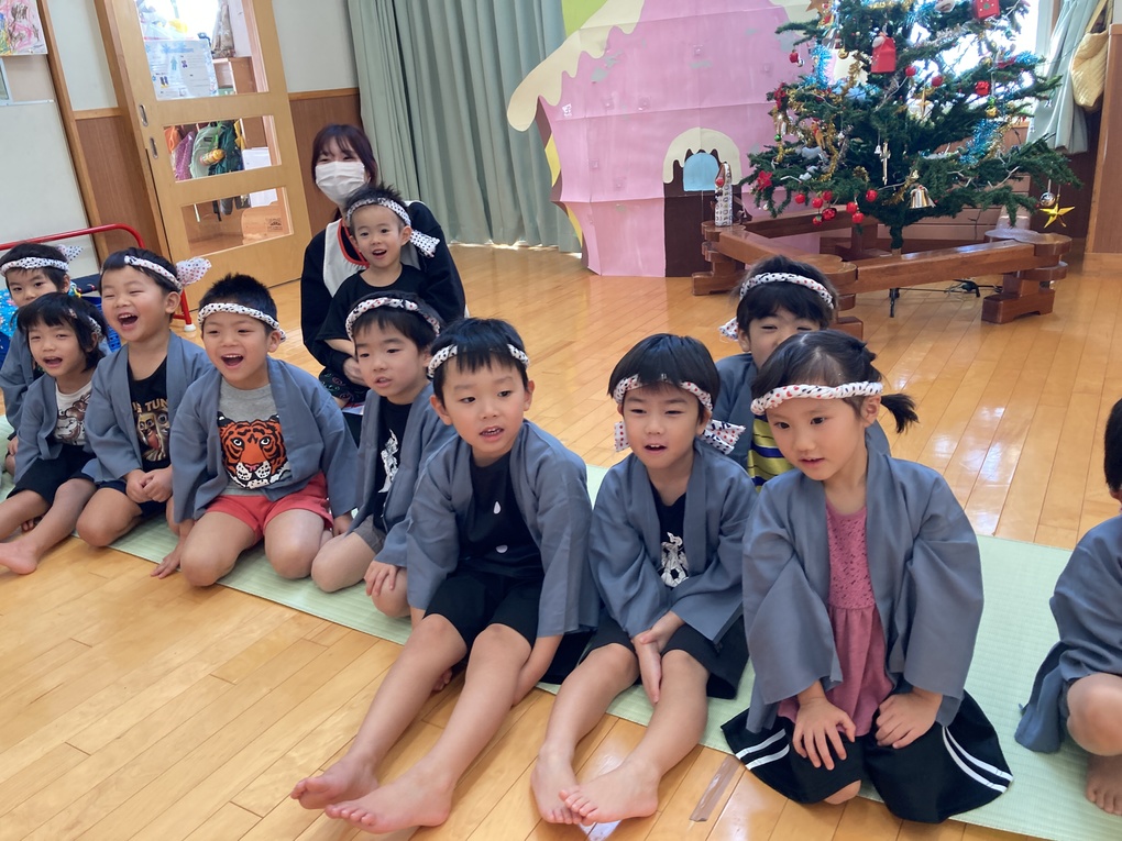 豆絞り、法被の準備をして楽しみな気持ちいっぱいのきりん組さん★