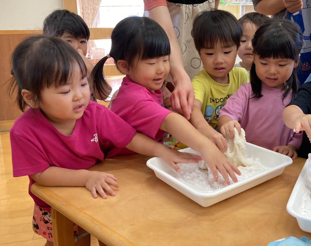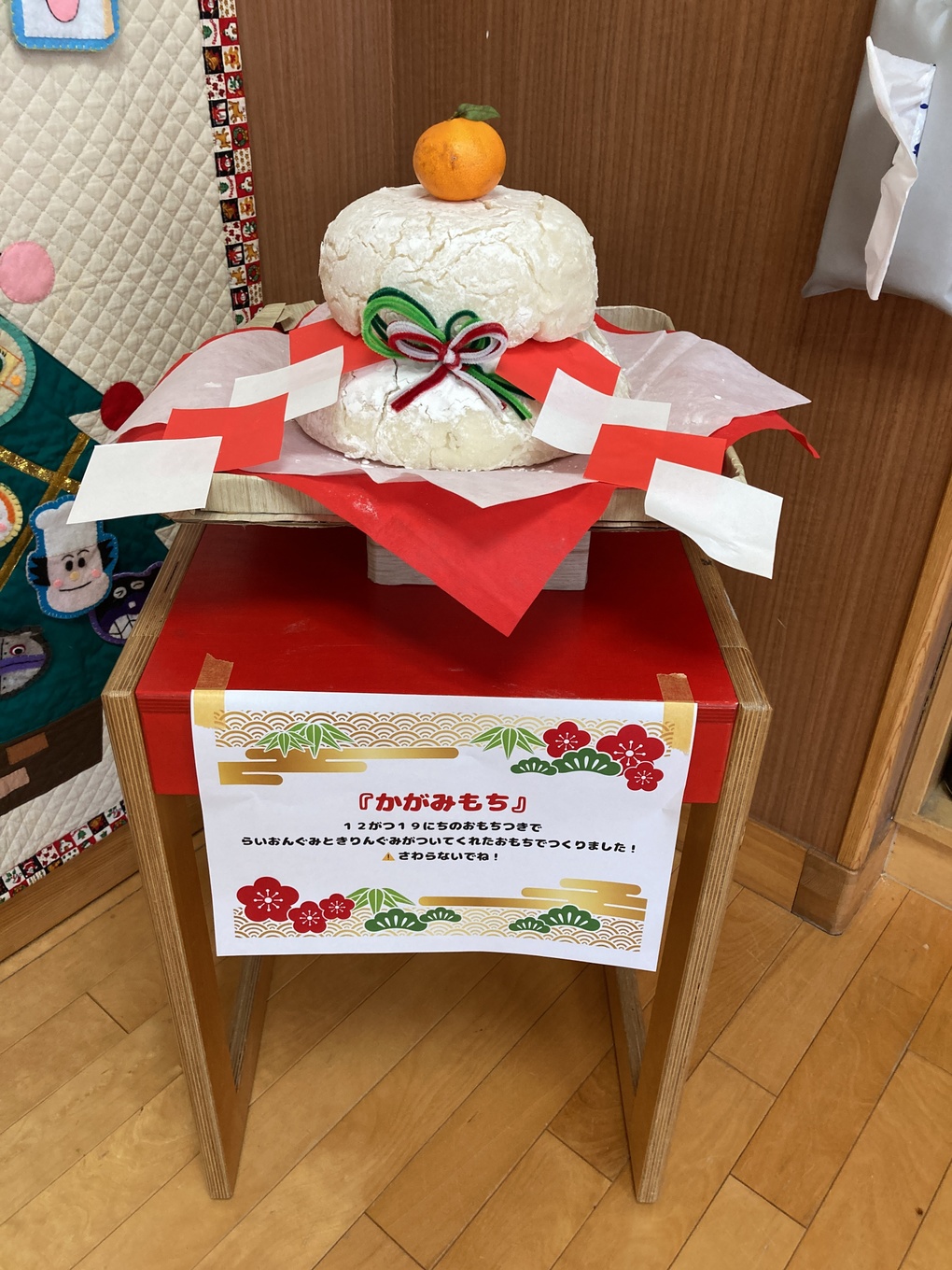 できたお餅で鏡餅が完成しました★そして感触遊びも楽しみました♪