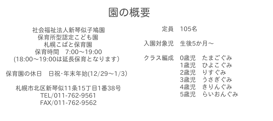 Copyright 社会福祉法人 札幌こばと保育園. All Rights Reserved.