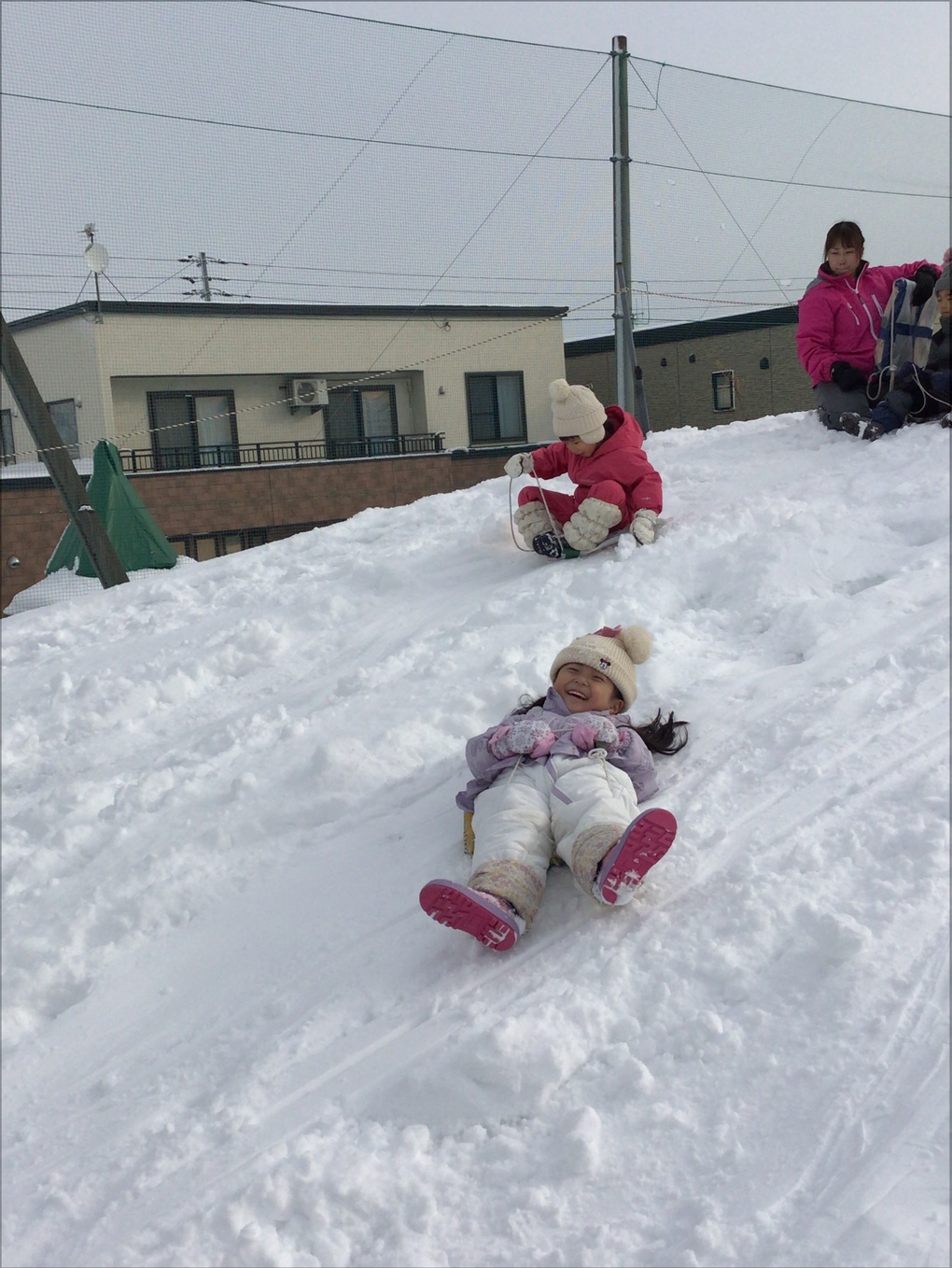 隣の小学校の山を借りてそり滑りをして遊んだりもしています!